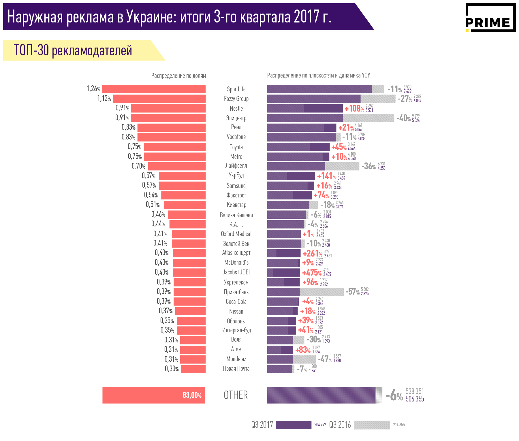Наружная реклама в Украине. Итоги 3 квартала 2017 года