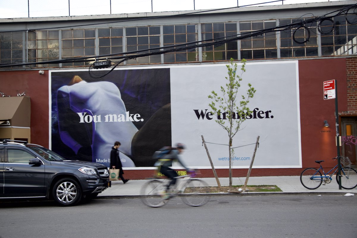 В своей первой out of home кампании WeTransfer не преминул подчеркнуть эти творческие связи с помощью серии необычных муралов в Нью-Йорке. Особенностью кампании со слоганом: «Вы создаете. Мы передаем» стало то, что сюжеты со временем менялись, разворачиваясь в повествование.