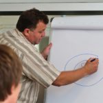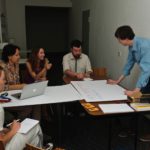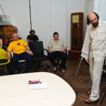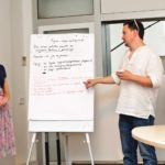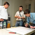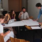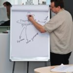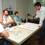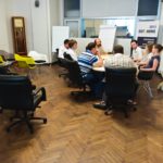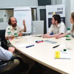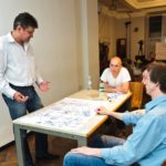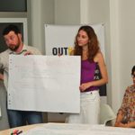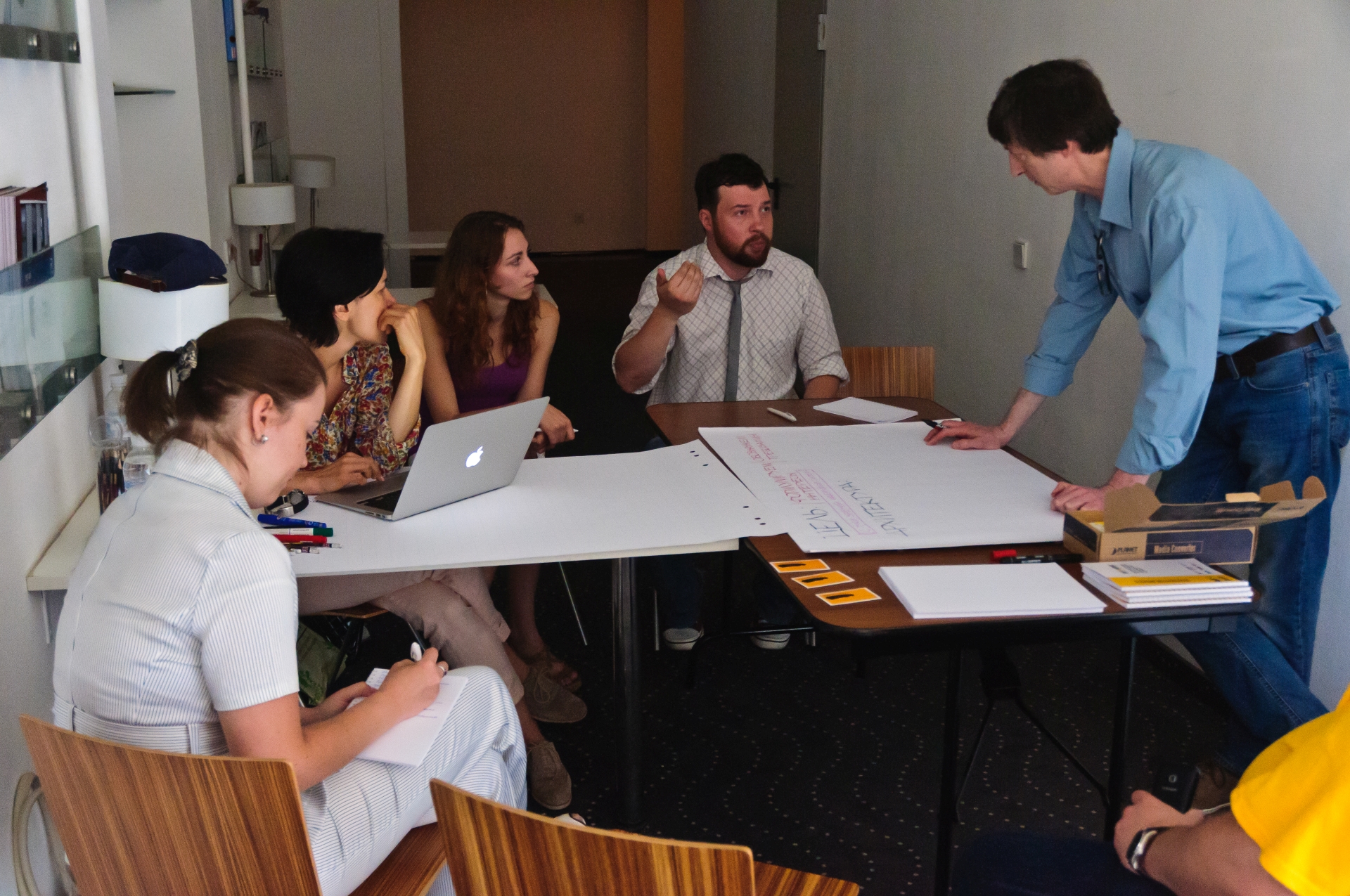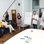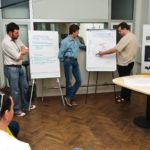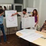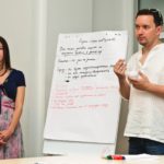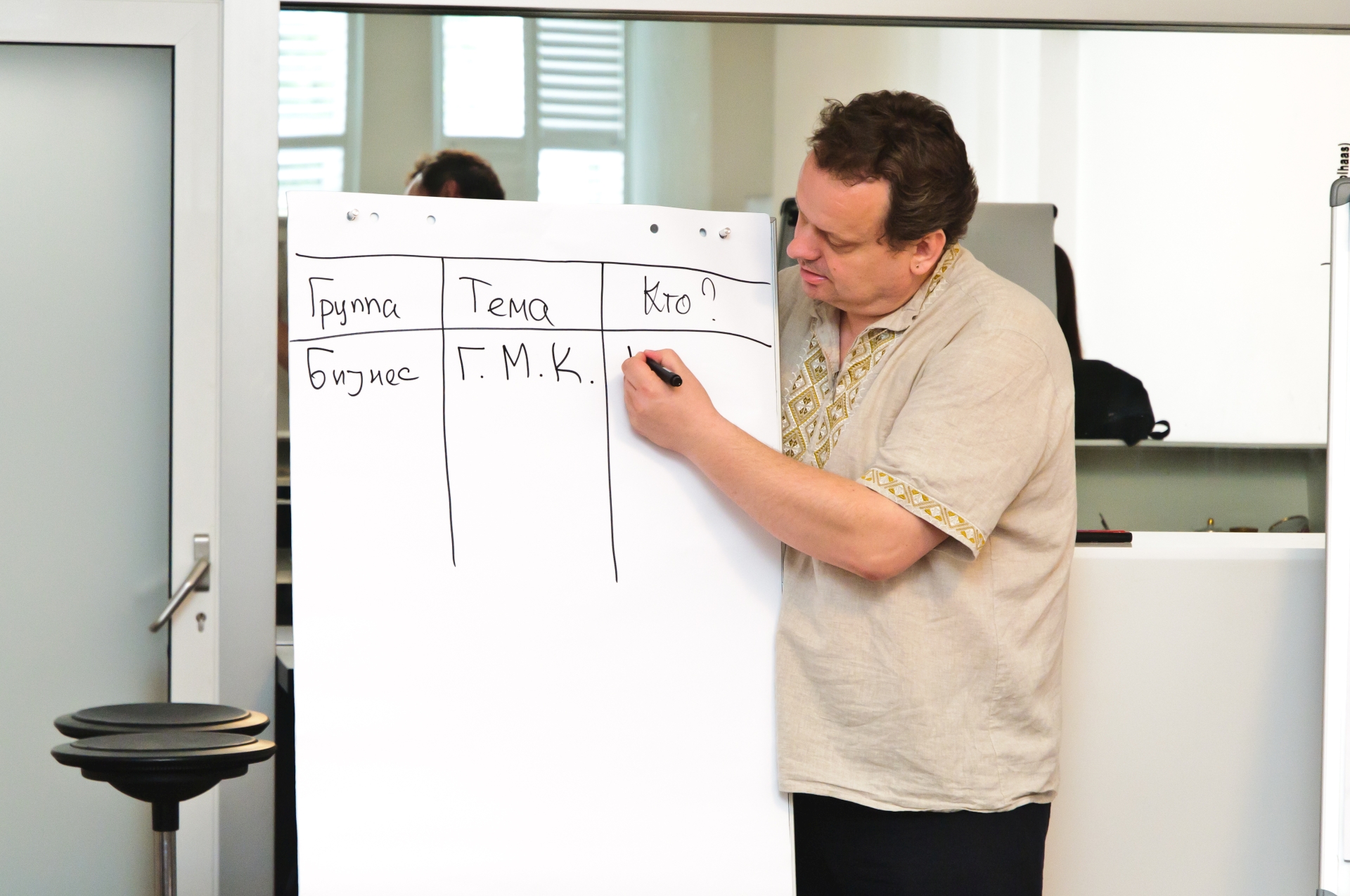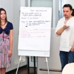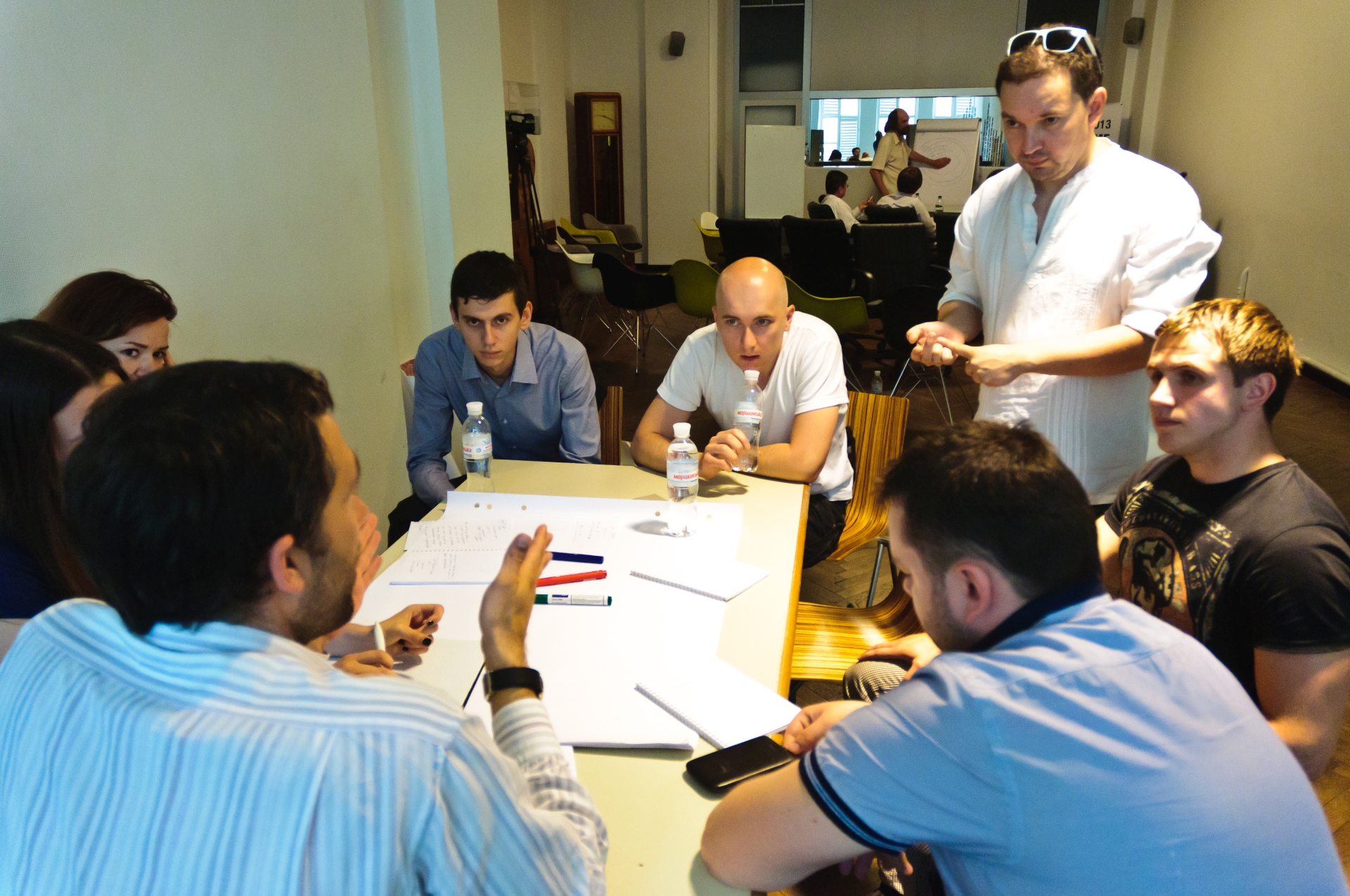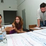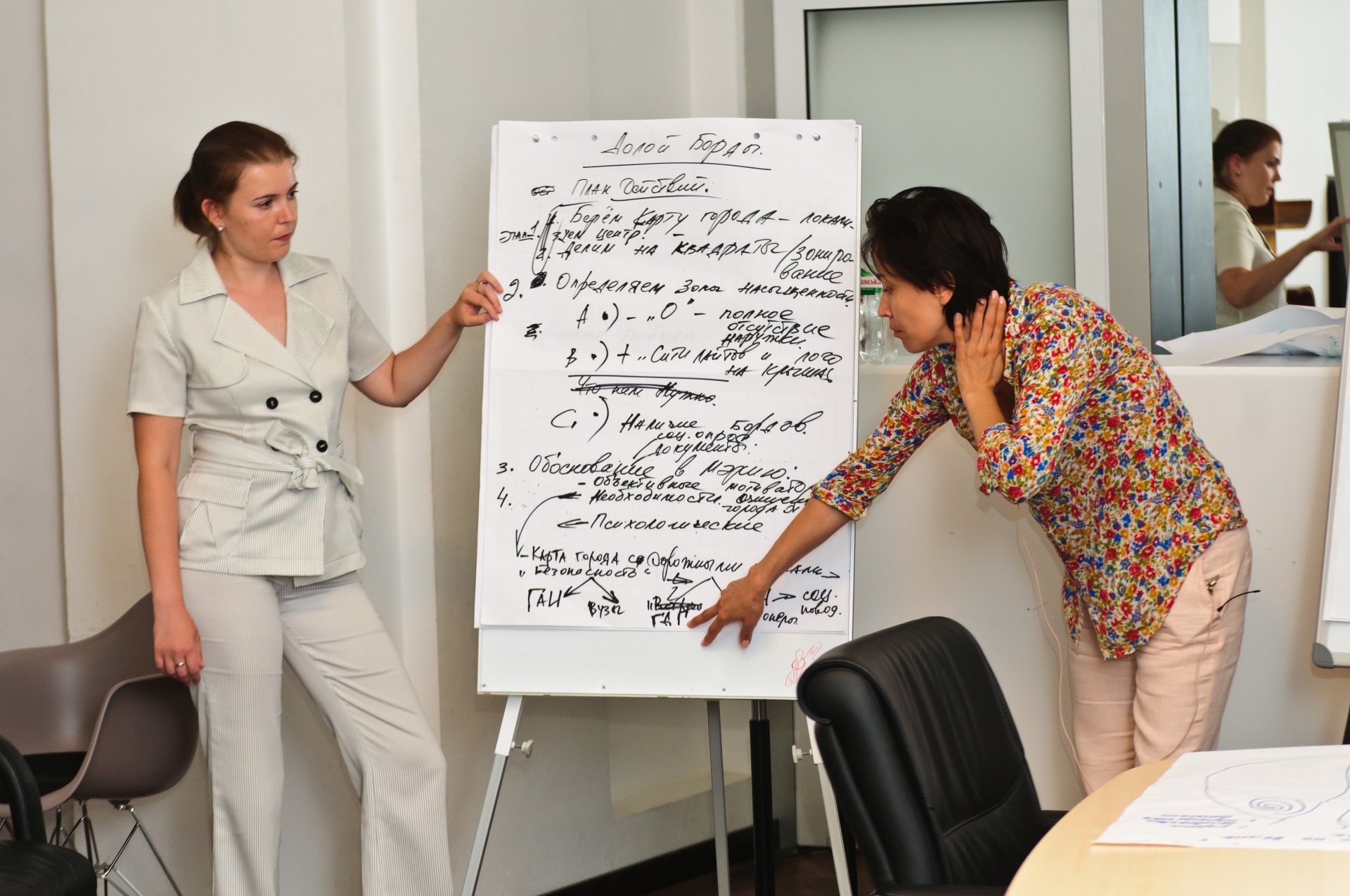 Работа воркшопа проходила в два этапа. На первом этапе из участников были сформированы три команды: «Архитекторы», «Бизнес» и «Общество», которые представили свое видение текущей ситуации в области социальных и маркетинговых коммуникаций в городе, а также предложили возможные пути ее улучшения.