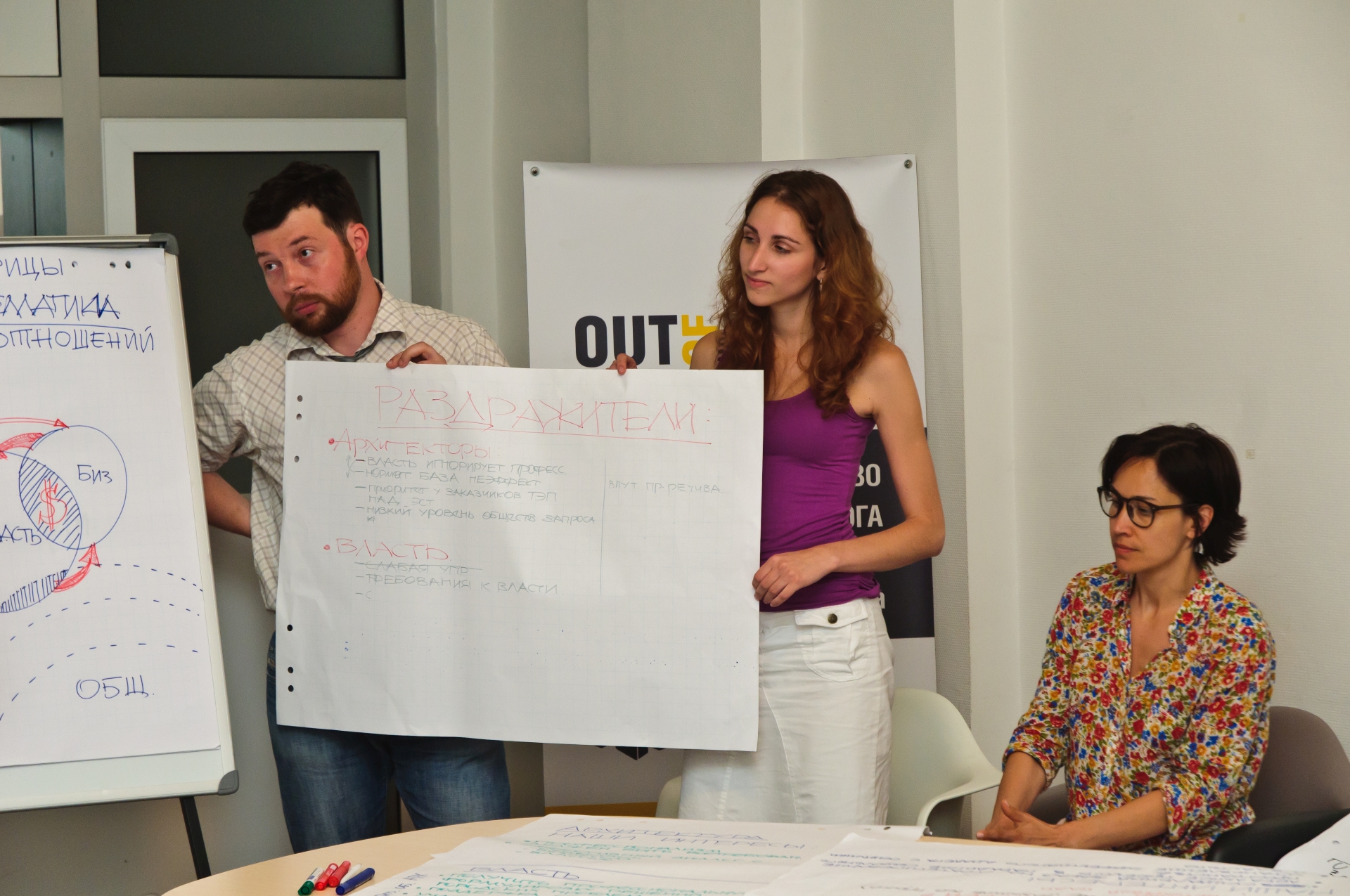 Все три группы, моделировавшие позиции принципиально разных участников процесса, оказались единодушны в понимании необходимости создания единой проектной площадки по разработке и реализации позитивных городских идей, в том числе в области социальных и маркетинговых коммуникаций.