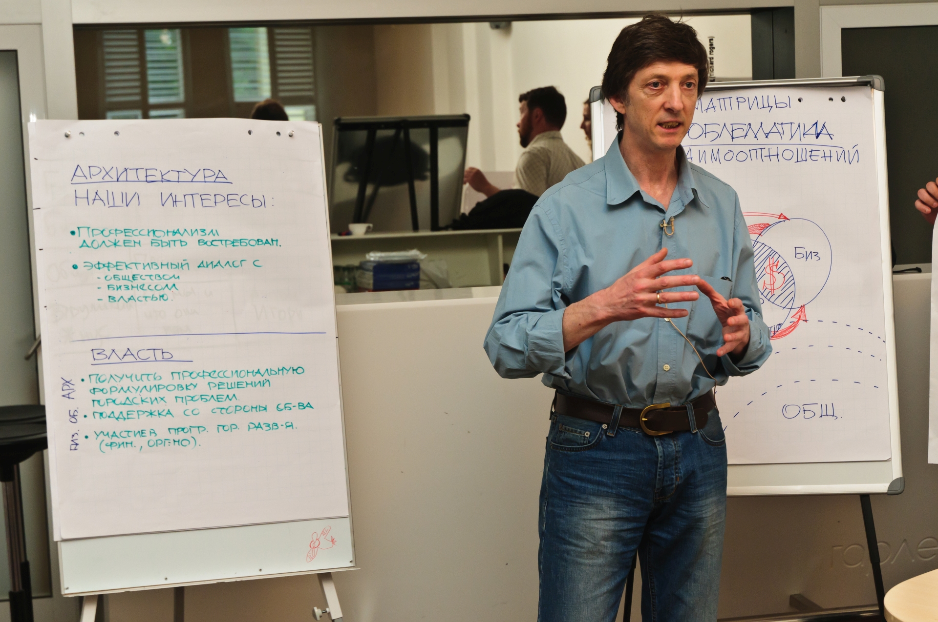 «Мы исходим из того, что современный город — это не столько и не только здания и инфраструктура пресловутого ЖКХ, сколько система взаимосвязей и социальных коммуникаций. Отсюда задача архитекторов и градоуправленцев состоит, в том числе, и в том, чтобы проектировать развитие социальных взаимоотношений в контексте развития города с учетом его долгосрочных перспектив», — Игорь Степанов, модератор группы «Архитекторы», член градостроительного совета Киева, советник-консультант главного архитектора Киева.